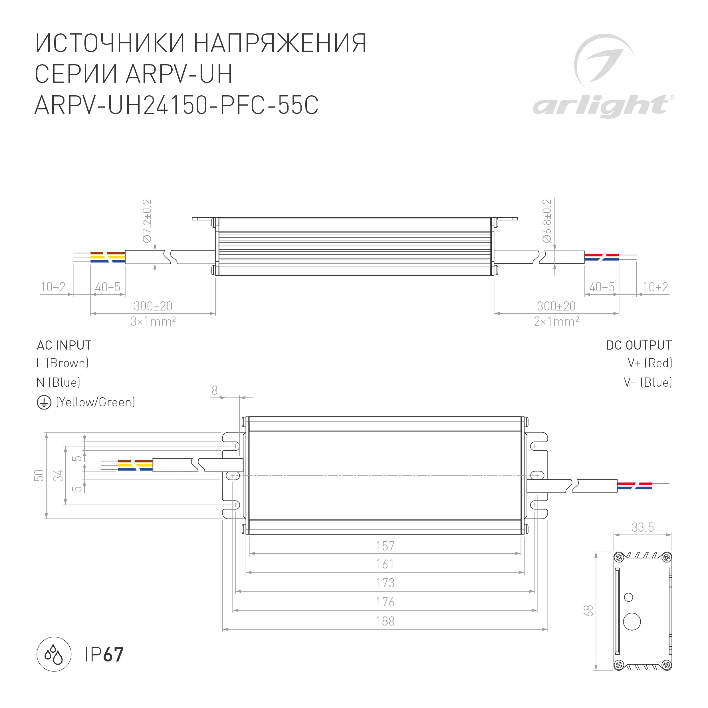 Наши специалисты знают все о продукции Arlight и с радостью помогут Вам выбрать комплектующие к товару "Блок питания ARPV-UH24150-PFC-55C (24V, 6.3A, 150W) (Arlight, IP67 Металл, 5 лет)", или другие товары из раздела "Источники напряжения - CV".