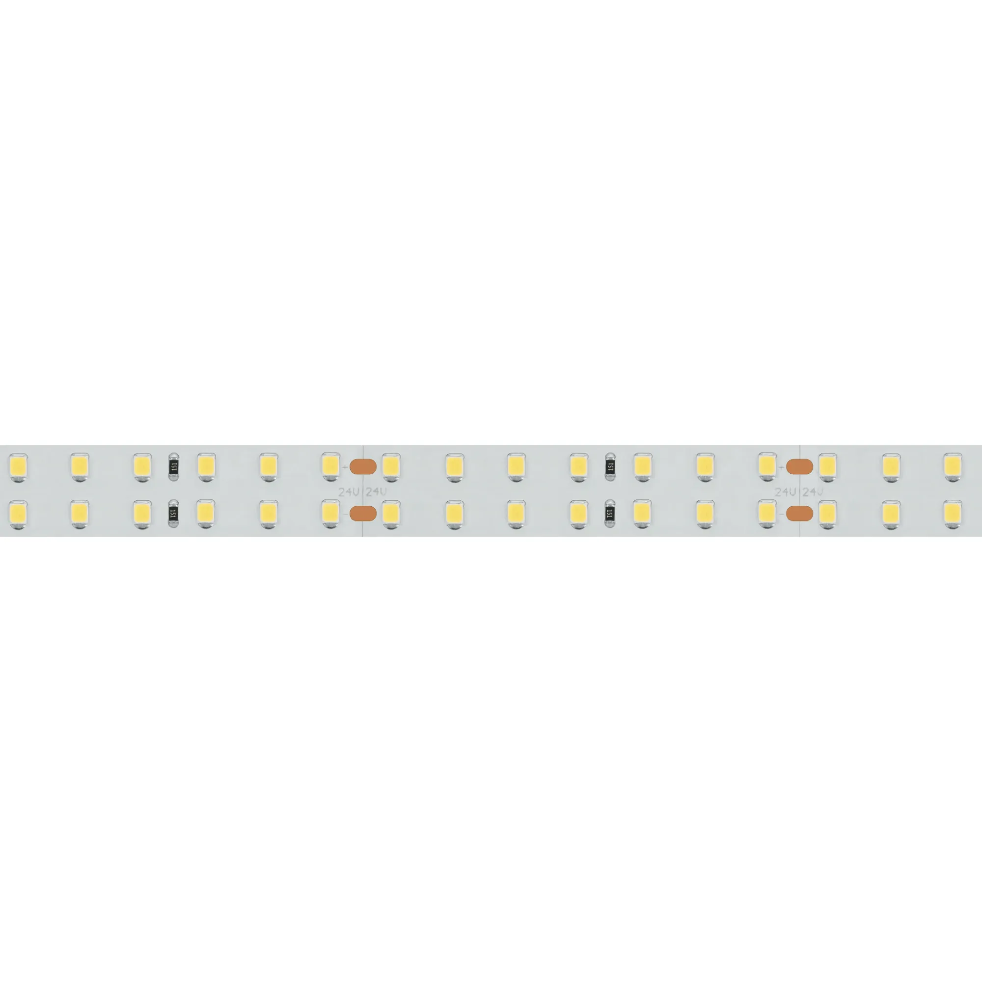 Гибкая лента LUX, светодиоды smd 2835, 196 шт/м (980шт на 5м), белая плата 15 мм, скотч 3М. Цвет ТЕПЛЫЙ 2900-3100K. Питание 24V, мощность 20 Вт/м (100 Вт на 5м), угол 120°, цветопередача CRI 95..98. Размеры 5000х15x1.5мм. Мин.отрезок 71.43мм, 14 светодиодов. Цена за 1м.