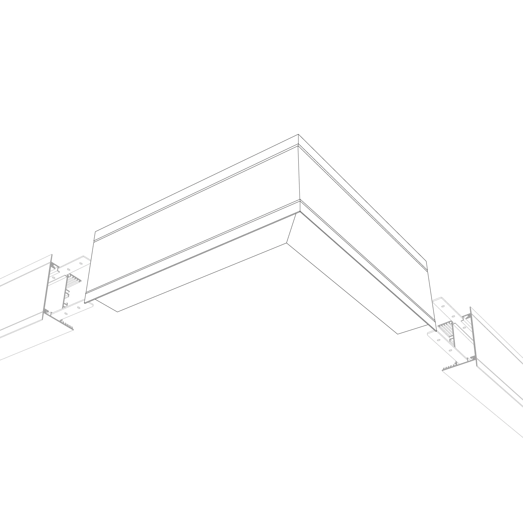 Угол в сборе, для профиля SL-LINIA65-F. Свечение наружу. В комплекте угол с экраном, соединители, винты, шестигранный ключ.