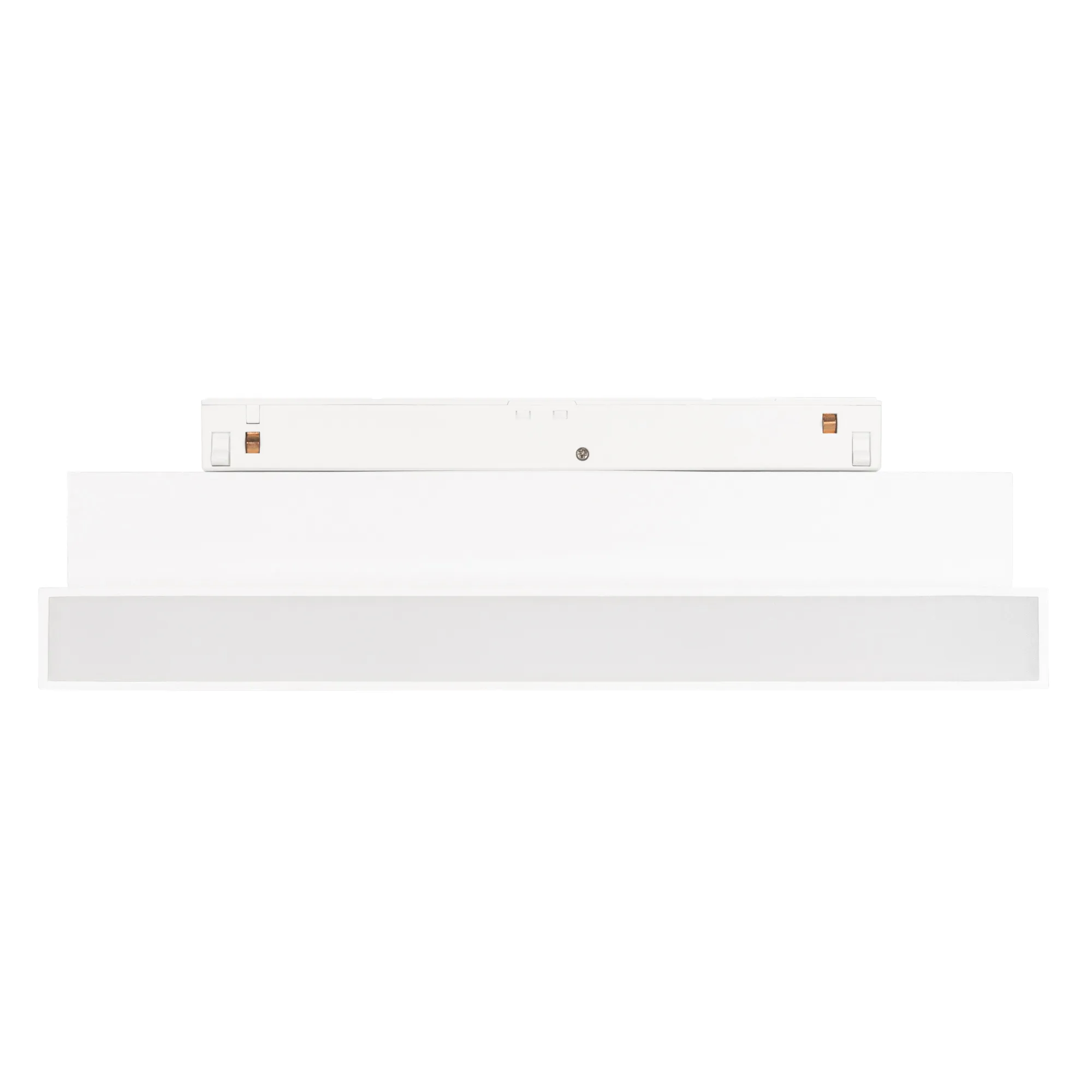 Светильник для магнитных треков MAG-ORIENT шириной 26 мм с управлением DALI. Мощность 12 Вт, св. поток 750 лм, 60 лм/Вт, теплый 3000 K, CRI>90, угол 80°, напряжение питания 48 В. Белый прямоугольный корпус из металл, экран поликарбонат, степень защиты IP20. Размер: длина 231 мм, ширина 23 мм, высота 107 мм. Монтаж на трек MAG-ORIENT. Пульсация <1%.