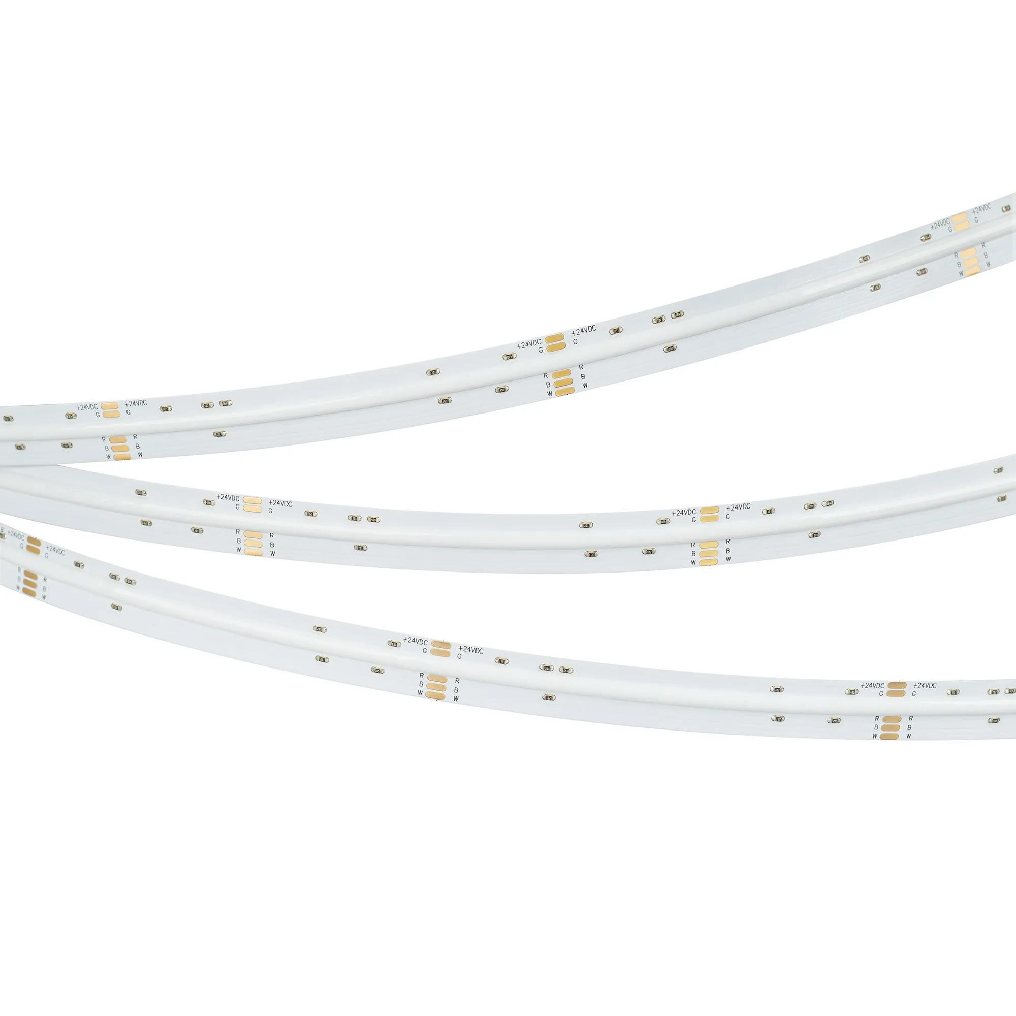 Светодиодная лента сплошного свечения COB серии X768. Светодиоды CSP, 768 шт/м, белая плата шириной 12 мм, скотч 3M. Цвет RGB + ТЕПЛЫЙ 3000K, индекс цветопередачи CRI>90, угол 120° Питание 24 В, мощность 15 Вт/м (75 Вт на 5 м). Размеры 5000x12x2.2мм. Мин. отрезок 83.3 мм. Цена за 1 м. Обязательна установка на профиль.