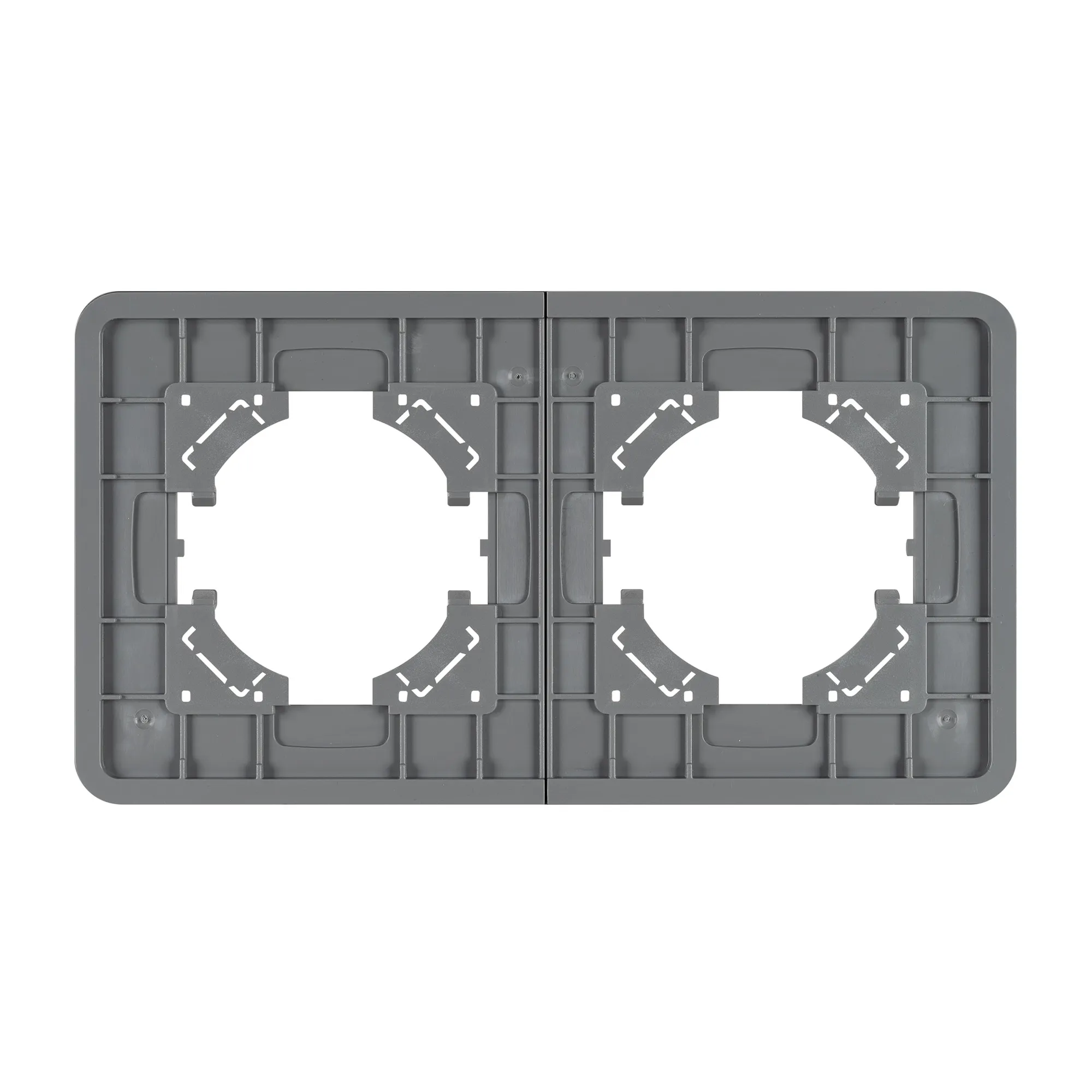 Рамка стеклянная на 2 поста, под встраиваемый механизм. Цвет - серый с Soft-Touch покрытием. Уровень герметичности IP20. Ориентация монтажа - горизонтальная (основным ориентиром служат посадочные выступы для накладки механизма).